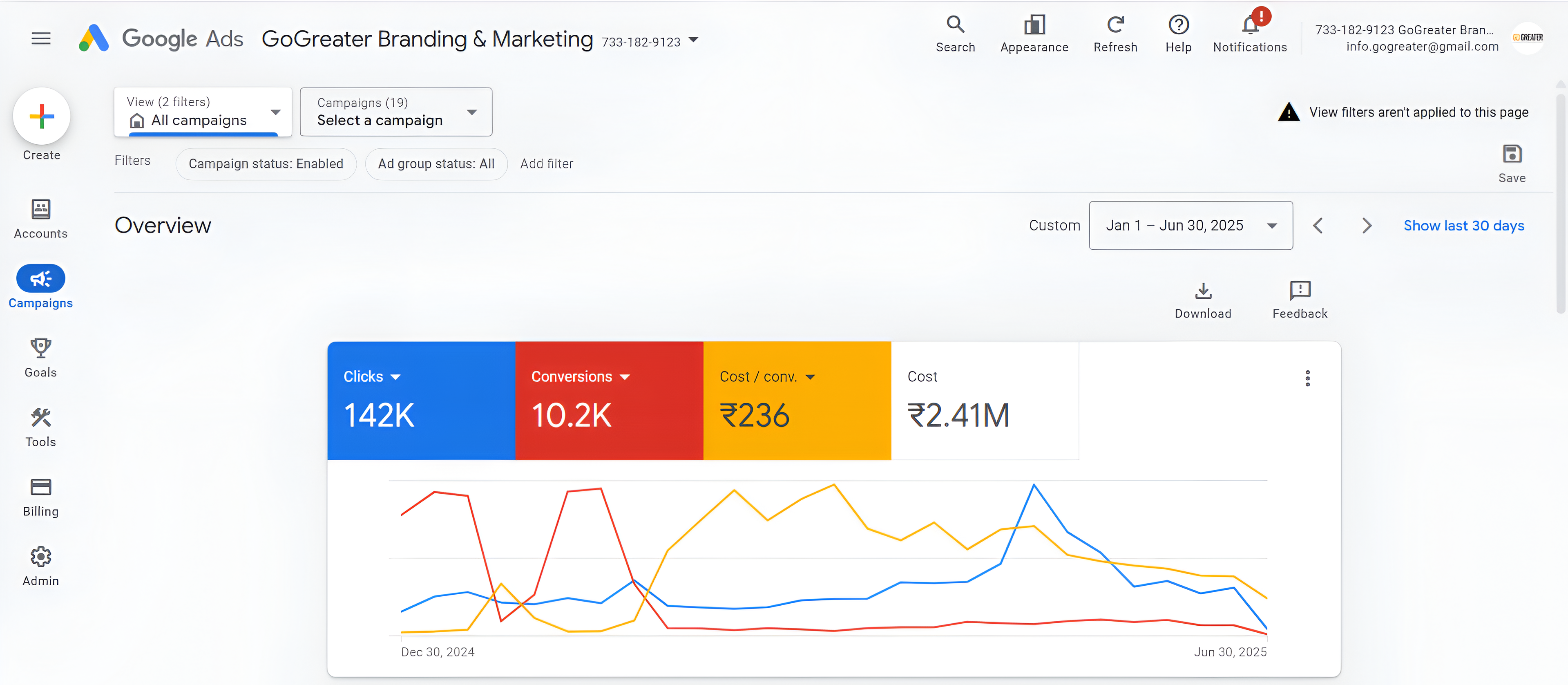We’ve successfully managed hundreds of campaigns with ad budgets ranging from a few hundred to several thousands of dollars, across platforms like Google Ads, Meta (Facebook/Instagram), and YouTube.